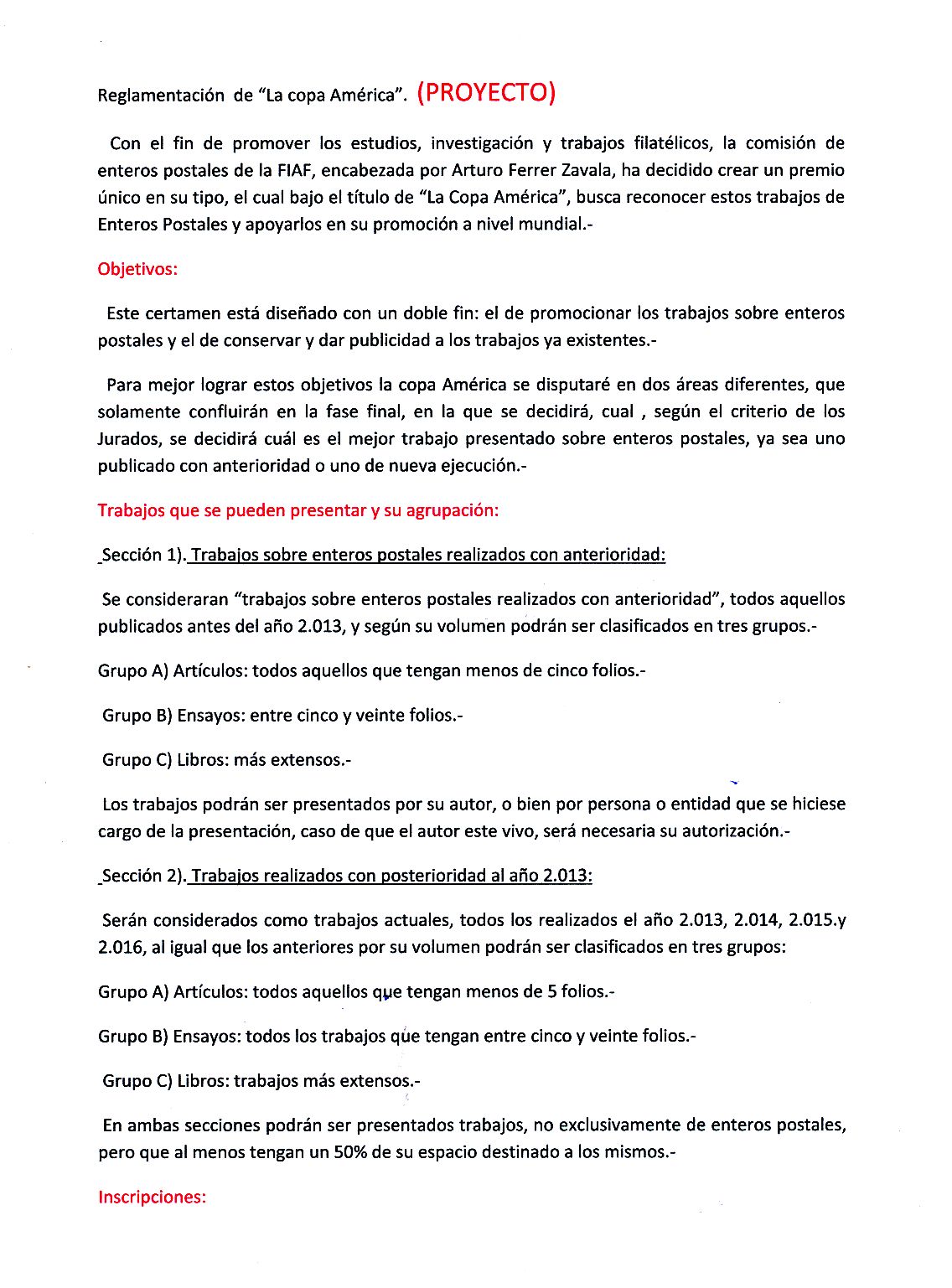 Proyecto de reglamento (ya confeccionado) de la Copa América.