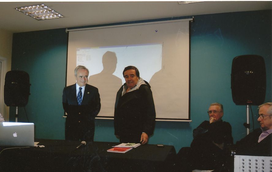 Miguel Casielles (Presidente de la Federación Argentina Jorge Moscatelli Andres Eslister y el que esto firma en un momento de la Presentación del seminario.-