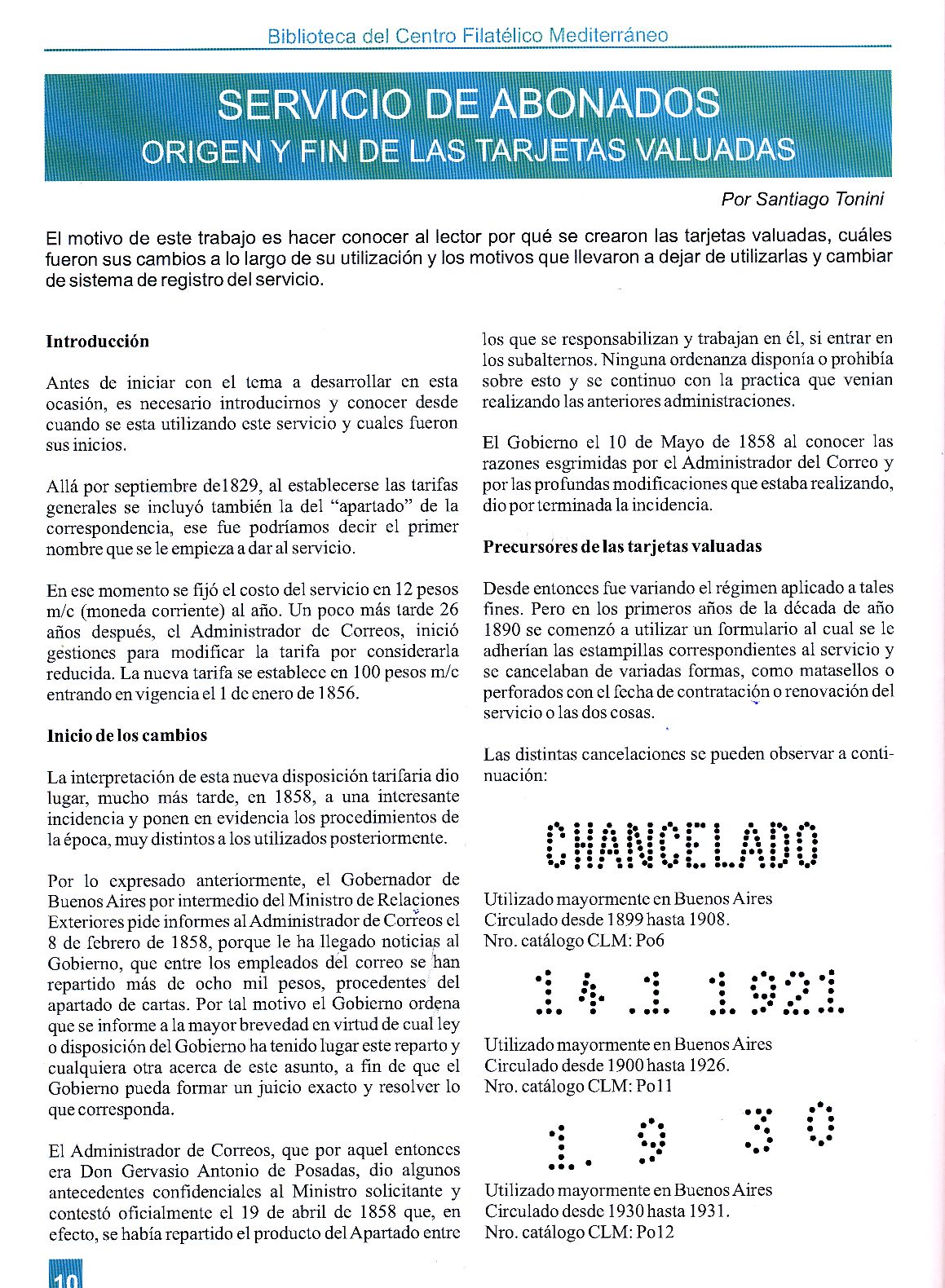 Santiago Tonini es una joven promesa de la filatelia Argentina ,en la aún reciente exposición de Rio Grande, nos mostró un estudio muy interesante sobre este tema que hemos podido ver en la Revista del Centro Filatélico Mediterráneo de Córdoba Argentina.-