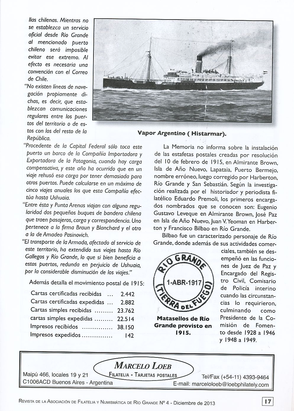 Trabajo aparecido en el número 4 de la Revista de la Asociación de Filatelia y Numismática de Rio Grande, correspondiente al mes de diciembre del año 2.013.-
