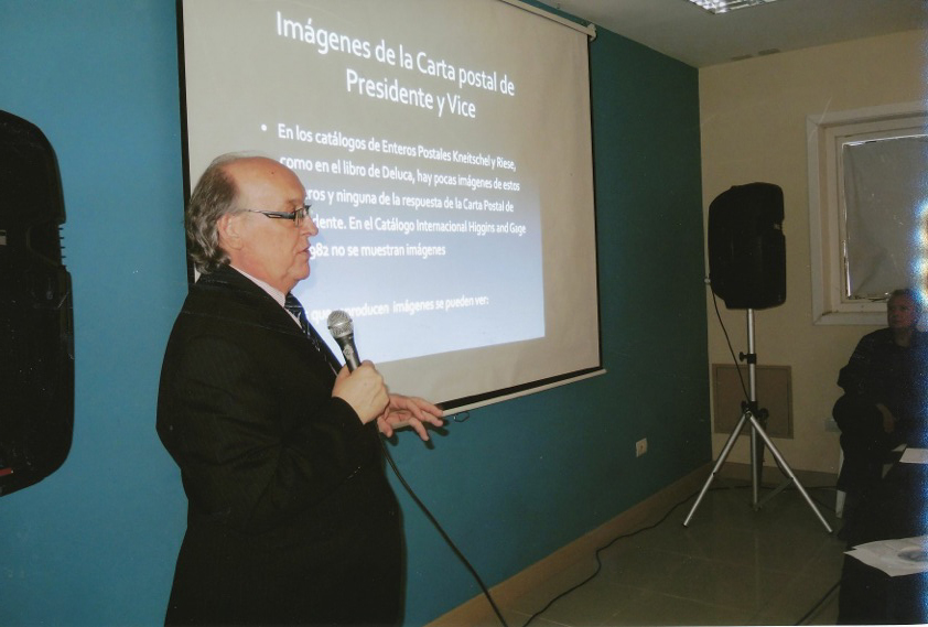Cuando llegue a Rio Grande me encontré que los amigos Argentinos a cuyo frente está el Presidente de grupo de Trabajo de enteros postales Alberto Villaronga, habían montado una serie de conferencias sobre enteros postales argentinos de gran interés. El ciclo lo componían cinco conferencias, la primera de ellas dada por su Presidente trataba sobre las “Sobrecargas Presidente y Vicepresidente” tema de gran interés y más después de lo acontecido en Chile, donde el tema sobre la “serie negra” (que el defendió con maestría) fue uno de los temas candentes.-