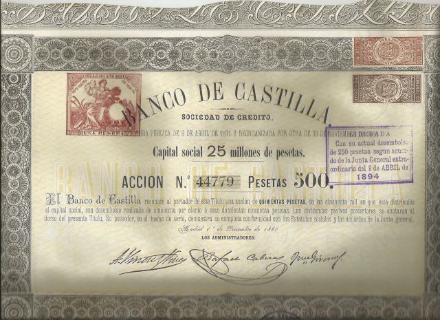 El Banco de Castilla fue constituido en Madrid en 1871 por varios promotores entre los que se encontraban Rafael Cabezas Montemayor y Jaime Girona Agrafel. Ambos personajes estuvieron también muy ligados al Banco de Barcelona ya que Manuel Girona, el hermano de Jaime, era presidente de dicho banco.