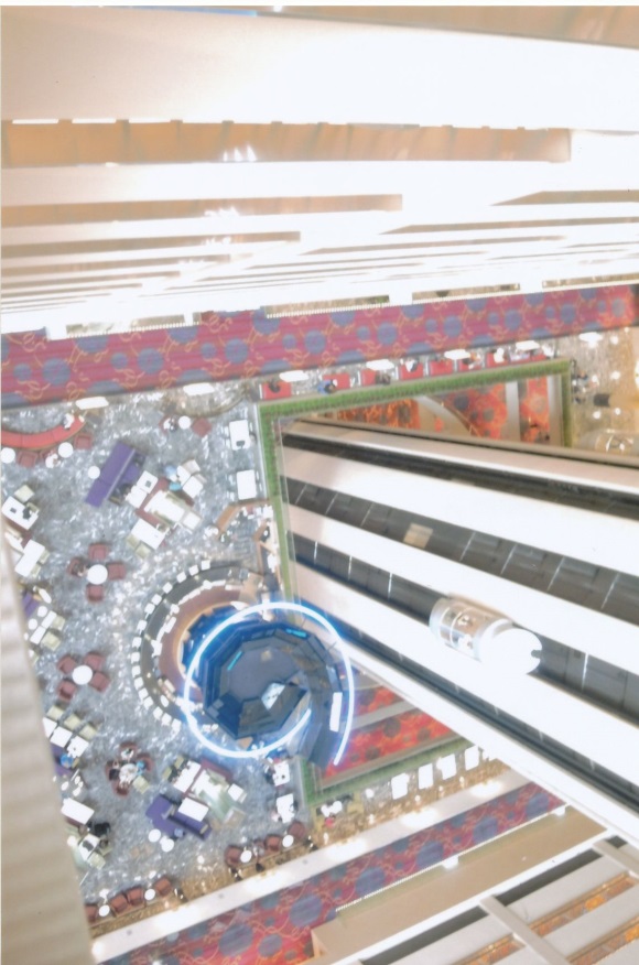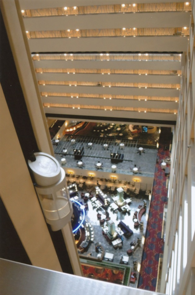 Vista de la parte baja del hotel desde el ascensor.-