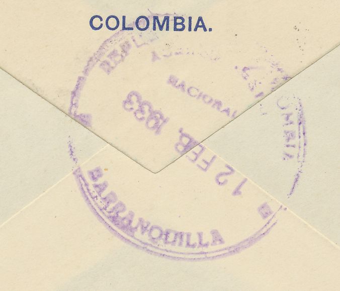 Parte posterior cuño de correo aéreo de Cali.-
