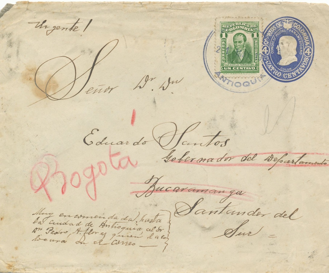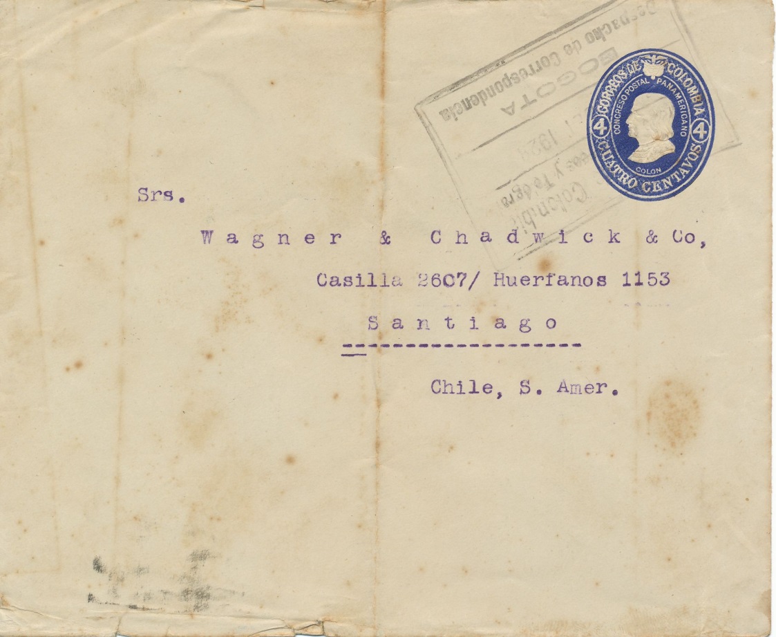 Carta enviada desde Bogotá el año 1.929 a Santiago de Chile.-
