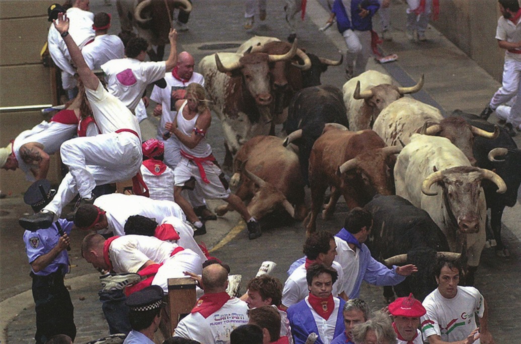 Las dos fotos del encierro están tomadas a la entrada de la calle de Estafeta, en la parte posterior indica el nombre del fotógrafo que en este caso es Endo, y este es el valor que puede ser enviado al “resto del mundo”.-