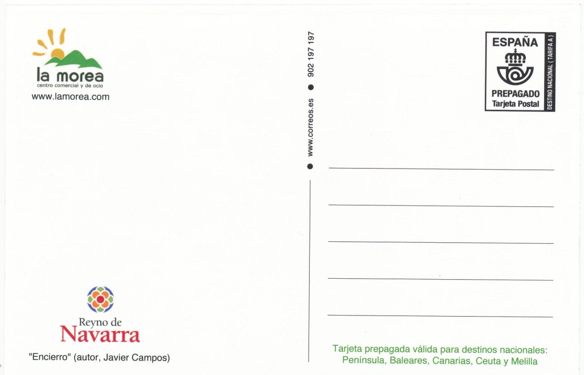 Hace unos días os hablaba sobre unas tarjetas que se venden en correos de San Sebastián, con vistas muy bonitas de la ciudad. Picado por la curiosidad, fui a la oficina principal de correos y me dijeron que allí también en Pamplona, se habían impreso estas tarjetas. En este caso con motivos San Fermineros.