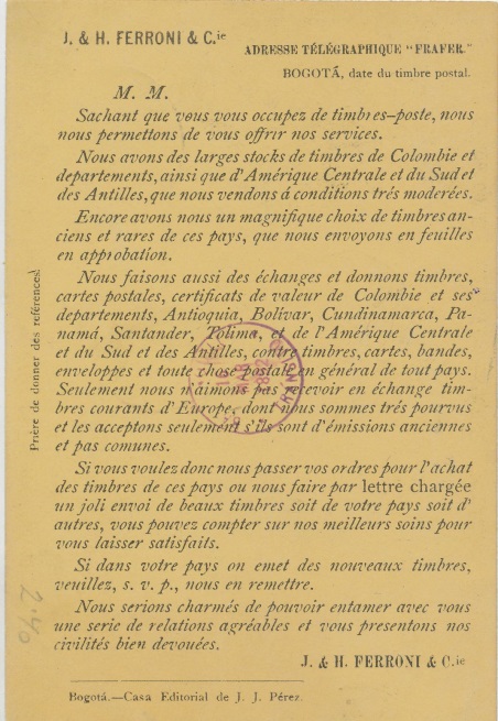 Entre las tarjetas Colombianas, esta es la primera emisión sobre la que se realizaron impresiones privadas. El dato es interesante ya que significa que el entero tuvo una gran difusión:
