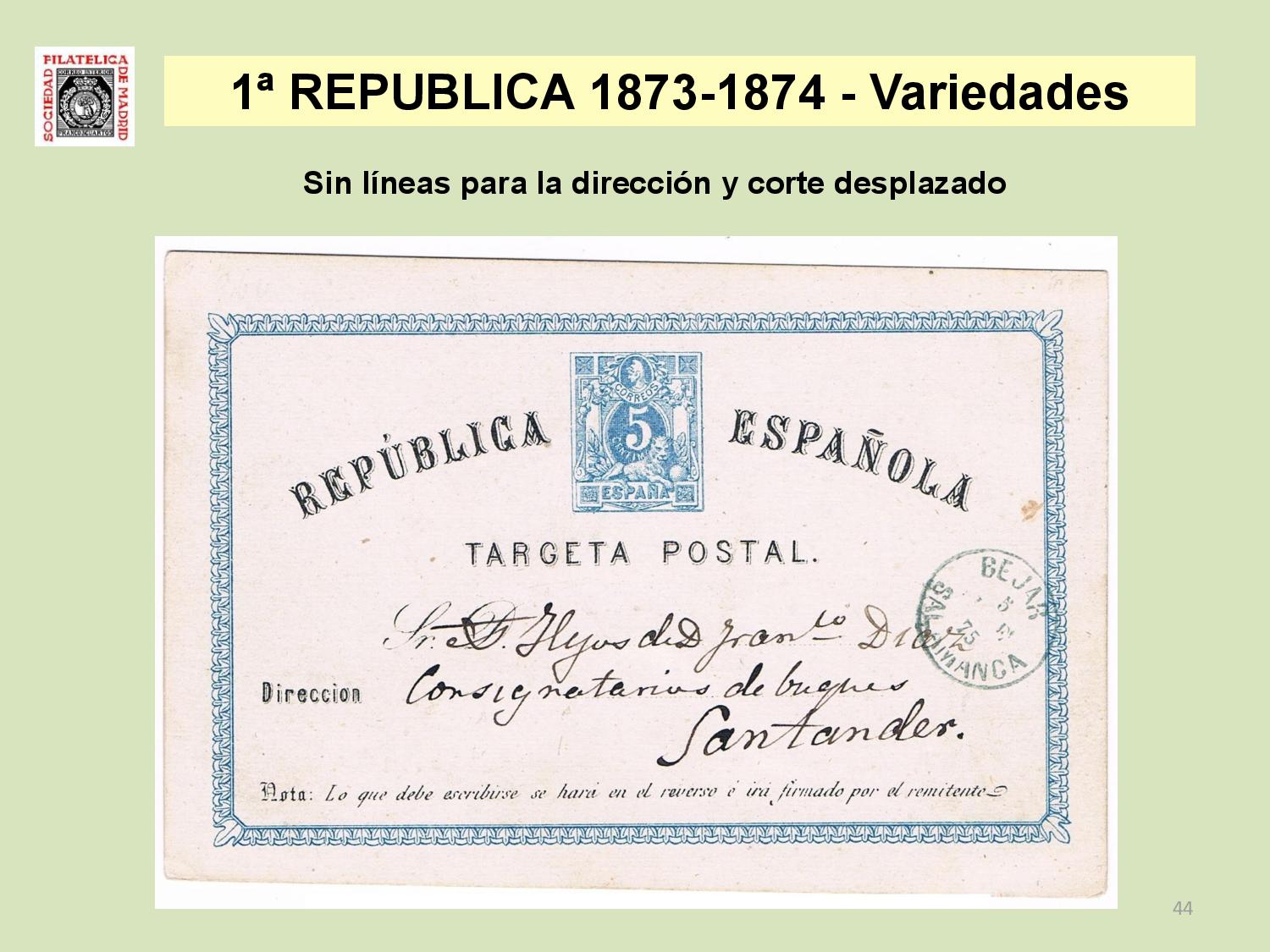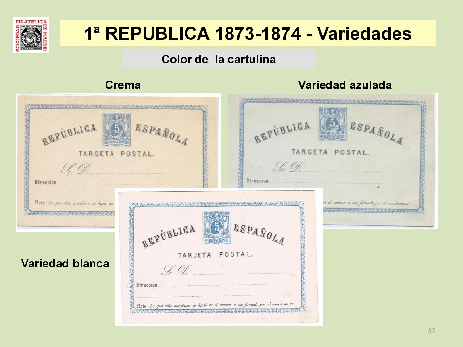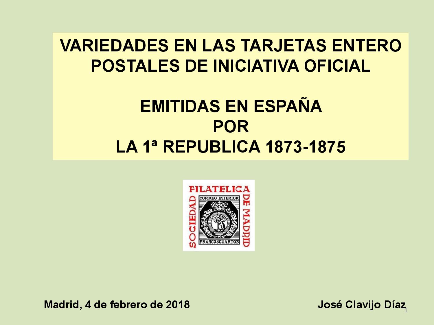 Conferencia dada por D.Jose Clavijo el dÃa 4 de febrero del 2.018 en los locales de Sofima Conferencia dada por D.Jose Clavijo el día 4 de febrero del 2.018 en los locales de SofimaVariedades de Tarjetas Entero Postales de la 1ª República 2018-02-06