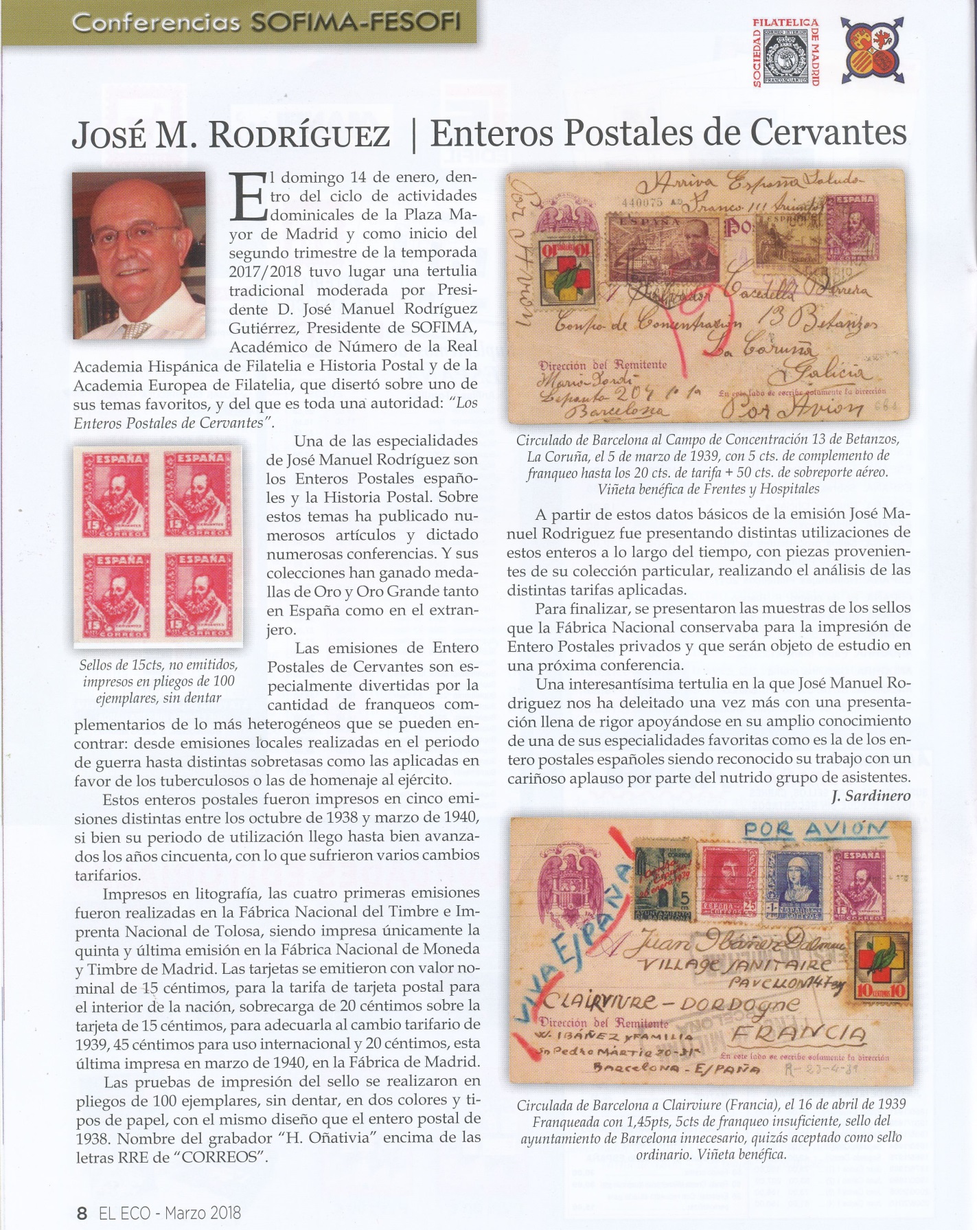 En el número 1.271 correspondiente al mes de marzo del año en curso, en su octava página encontramos un artículo de J.Sardinero, sobre una conferencia recientemente dada por José M.Rodriguez, el día 14 de enero en los locales de SOFIMA, que por su interés fotocopiamos y Transcribimos a continuación.-