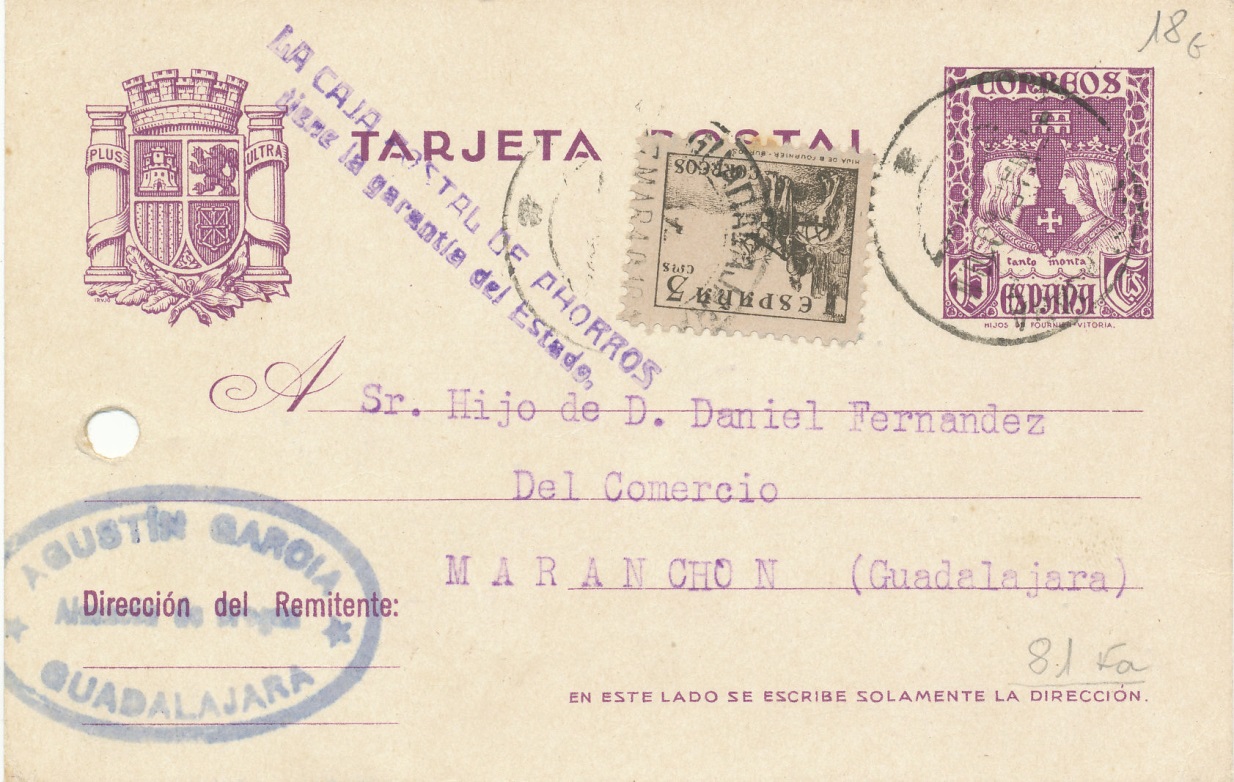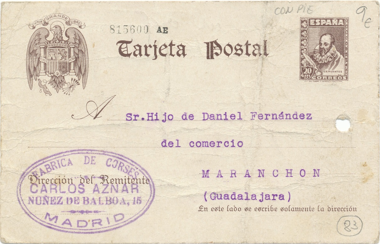 Las tarjetas de la serie Cervantes, lo escribo para los amigos extranjeros no tan familiarizados con nuestras tarjetas, fue la segunda serie que se imprimió durante el Gobierno del General D. Francisco Franco, la primara llevaba un sello con la imagen de los Reyes Católicos: