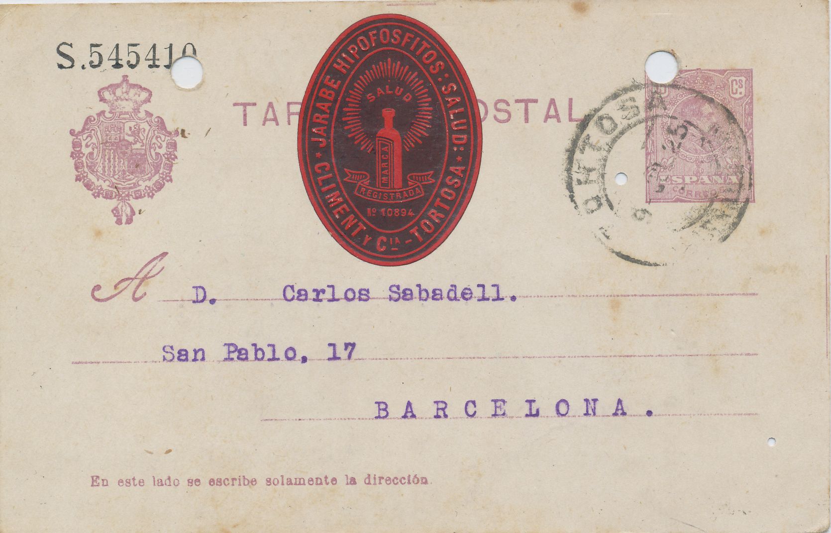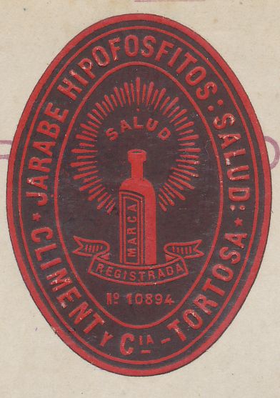 La viñeta pertenece a los laboratorios farmaceuticos, “ Climent y CiA” de Tortosa, los Hipofosfitos, era un medicamento muy popular en aquel tiempo, que servia para combatir los dolores gastricos y las enfermedades de la piel.-