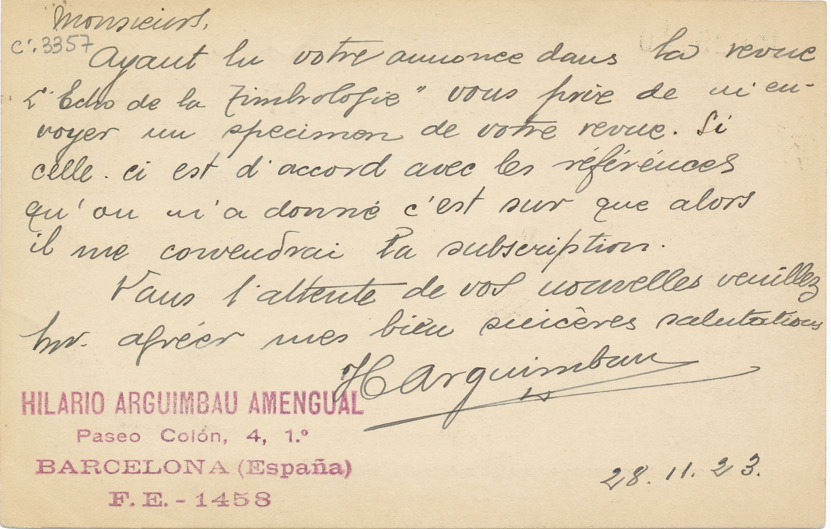4).- Hilario Arguimbau Amengual, Barcelona.-