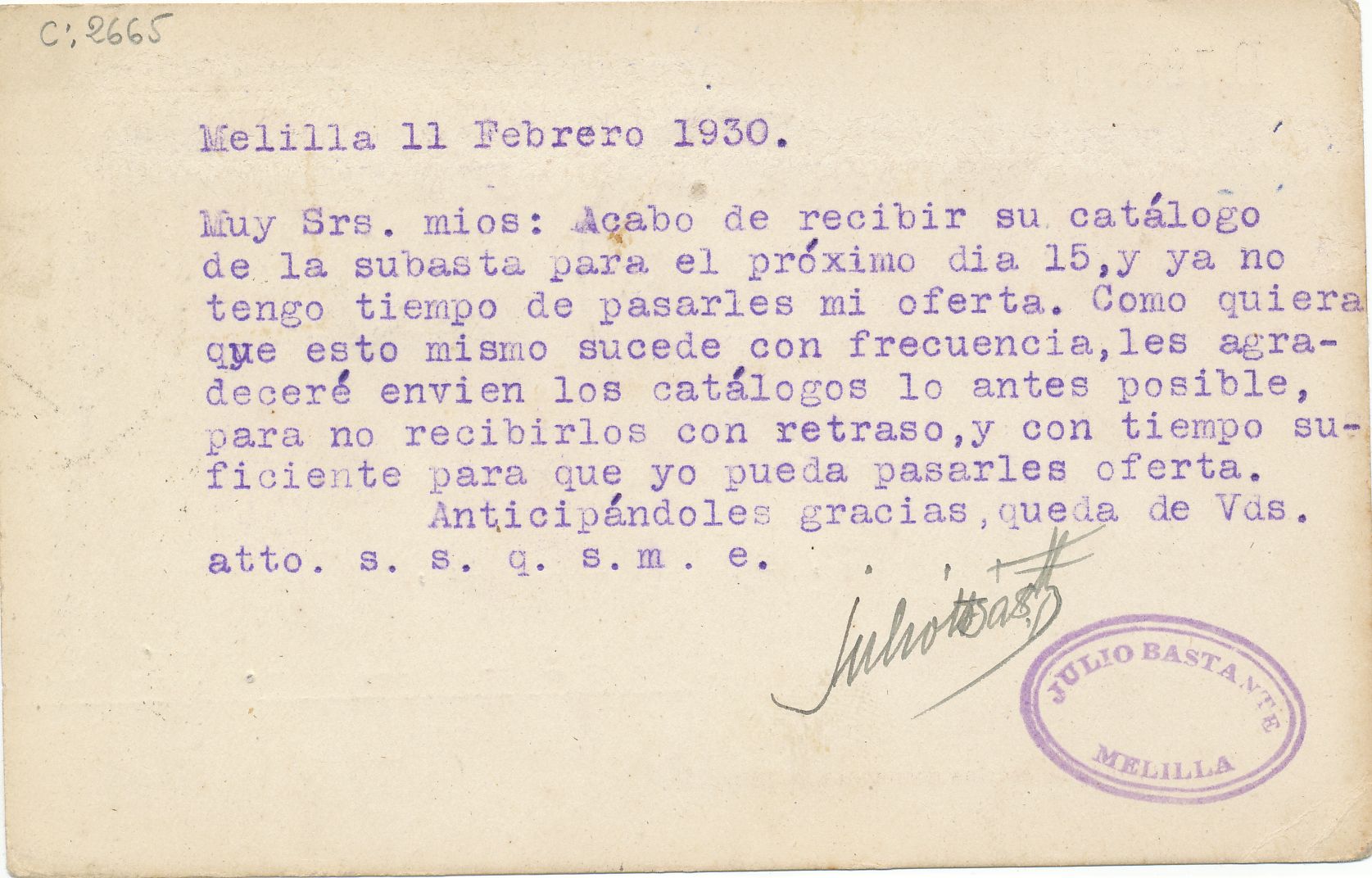 6).- Julio Bastante, Melilla.-