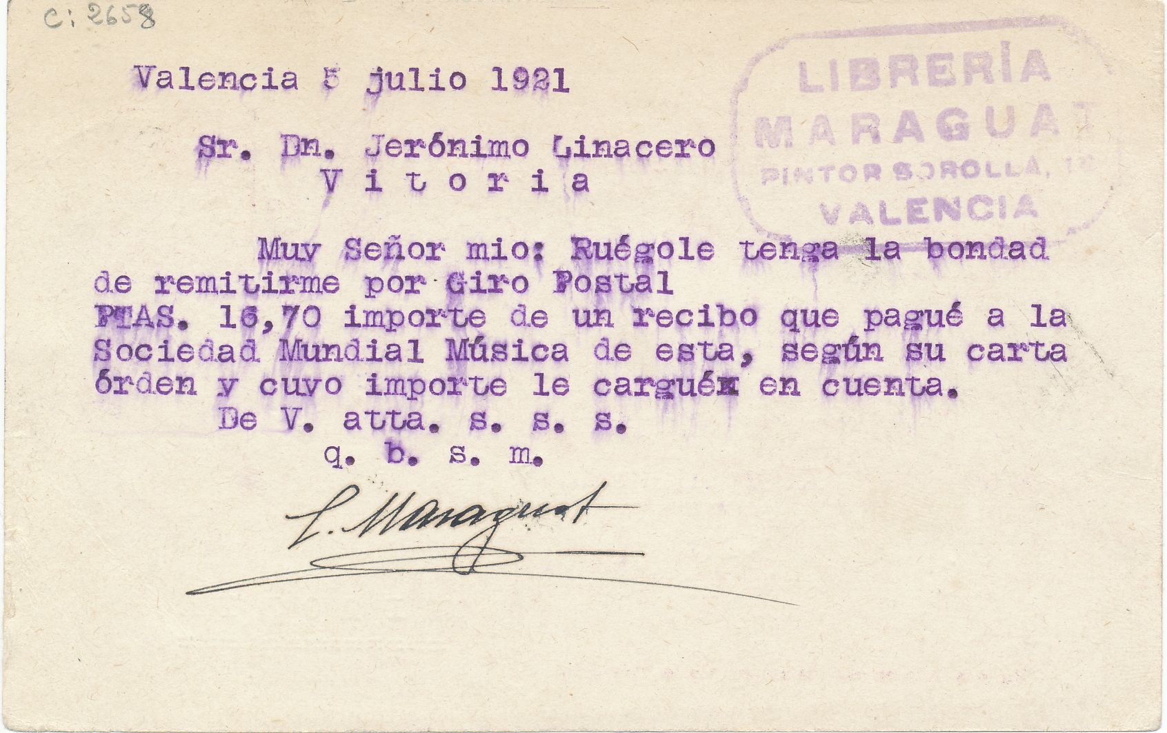 Privatizada mediante cuño rectangular, por el propietario de la librería “Maraguat”.-