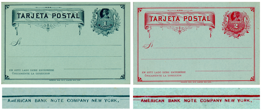 El 3 marzo de 1896[50] se encargan a la ABN Co. New York 400.000 tarjetas de 1 ctvo. (fig. 63), la que fueron puestas en circulación en noviembre de 1896 y 100.000 tarjetas de 2 cts. puestas en circulación en enero de 1896.