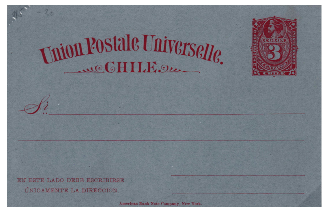 En el año 1894 se encarga a la Bradbury & Co. of London la confección de 100.00 tarjetas de 1 ctvo. (fig. 56) para el uso de tarjetas impresa en Chile, las que fueron puestas en circulación en enero de 1895.
