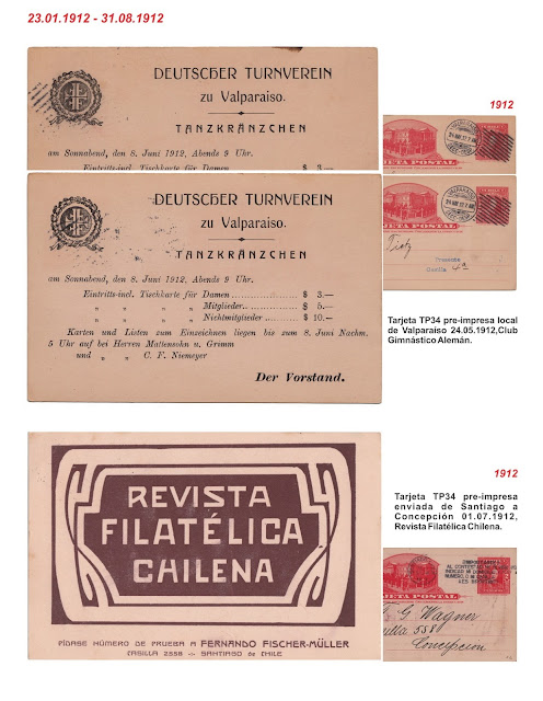 Hace poco publicamos en este blog, en nueve entregas, el completo estudio de Patricio Aguirre Warden sobre la tarifa chilena para impresos, en las tarjetas entero postales de fines del siglo XIX y principios del XX.